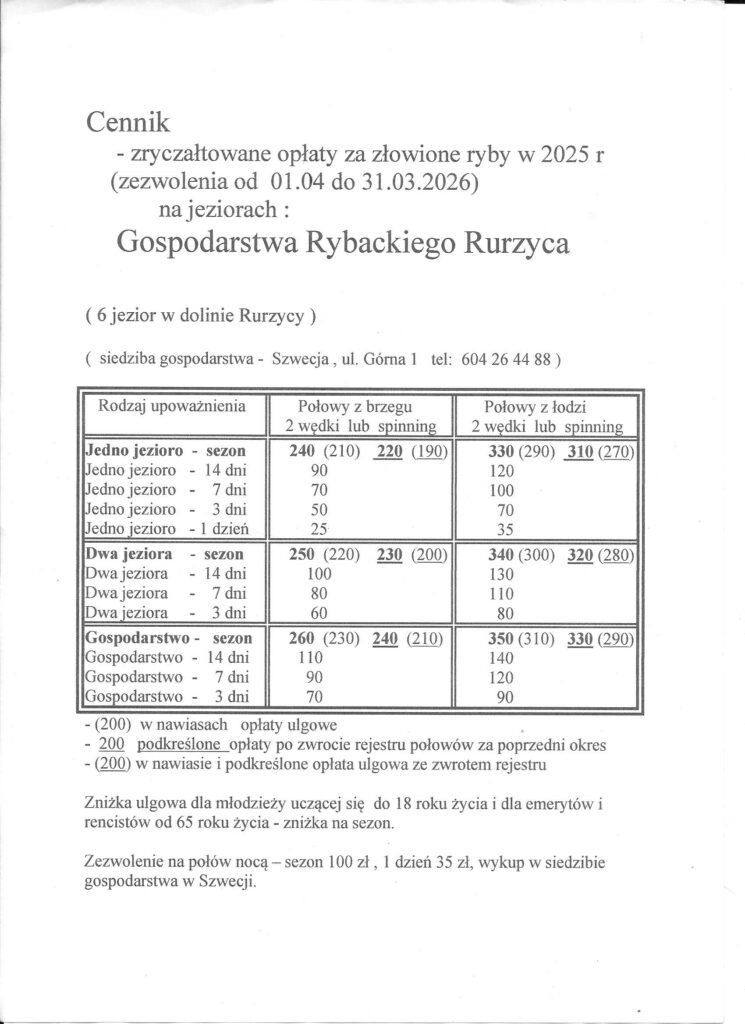 Opłaty za zezwolenia Na Dolinę Rurzycy można opłacić w Sklepie: 1.Wędkarski Red Fish w Pile na ul powstańców Wielkopolskich 9A